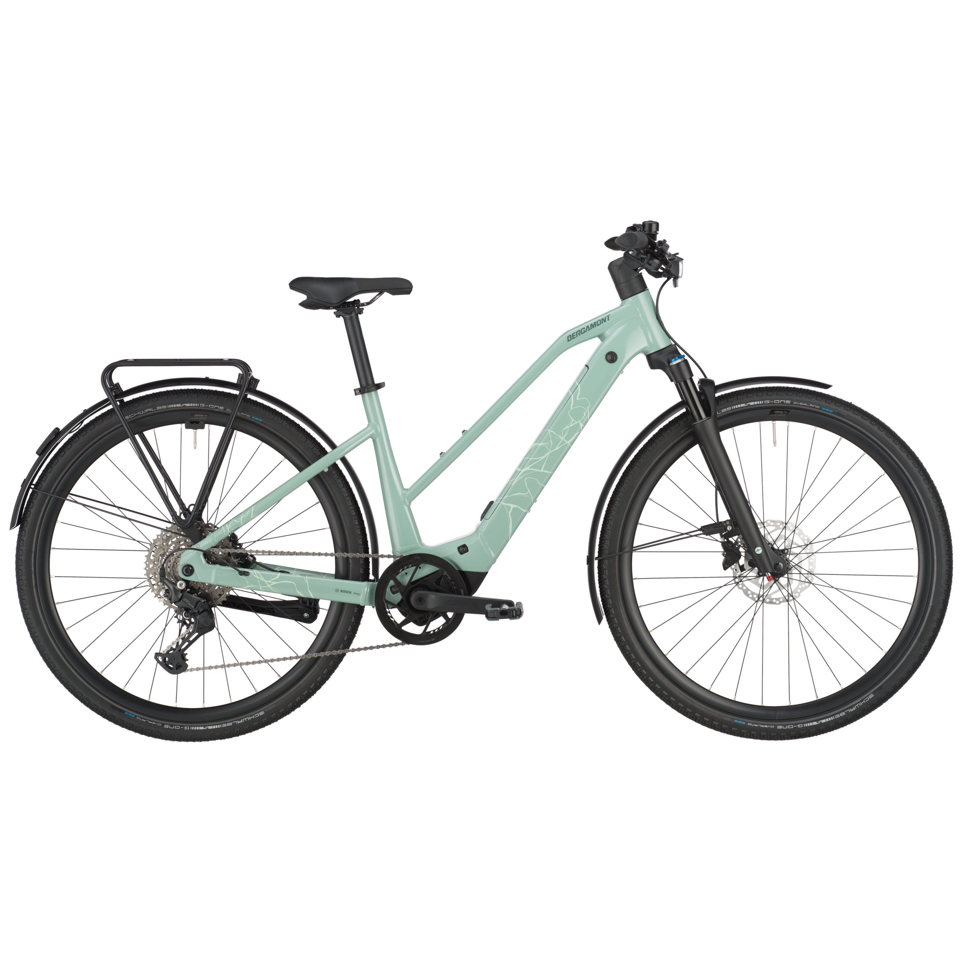 The Bergamont Helix is a lightweight urban bike with clean and sportive looks, as well as comfortable riding characteristics. It features a compact yet powerful Bosch Performance Line SX electric drive system. The perfect bike to get you around town, for light touring and fast commuting. Being fully equipped, all components smoothly integrate into the design language while being functional first and foremost. The Bosch CompactTube battery integrated into the frame can be easily removed for remote charging. With the Bosch Smart System advanced connectivity features and upgrades are available: Use the eBike Flow App to control your bike or add optional extras like a Bosch PowerMore battery for increased range. Ultra lightweight aluminum frame, Suntour suspension fork with 75 mm travel, Shimano Nexus 8-speed internal gear hub and low-maintenance belt drive, Bosch Smart System with compact Performance Line SX motor, Shimano hydraulic disc brakes, 28″ Schwalbe G-One Overland 365 tires, LED lighting system front and rear