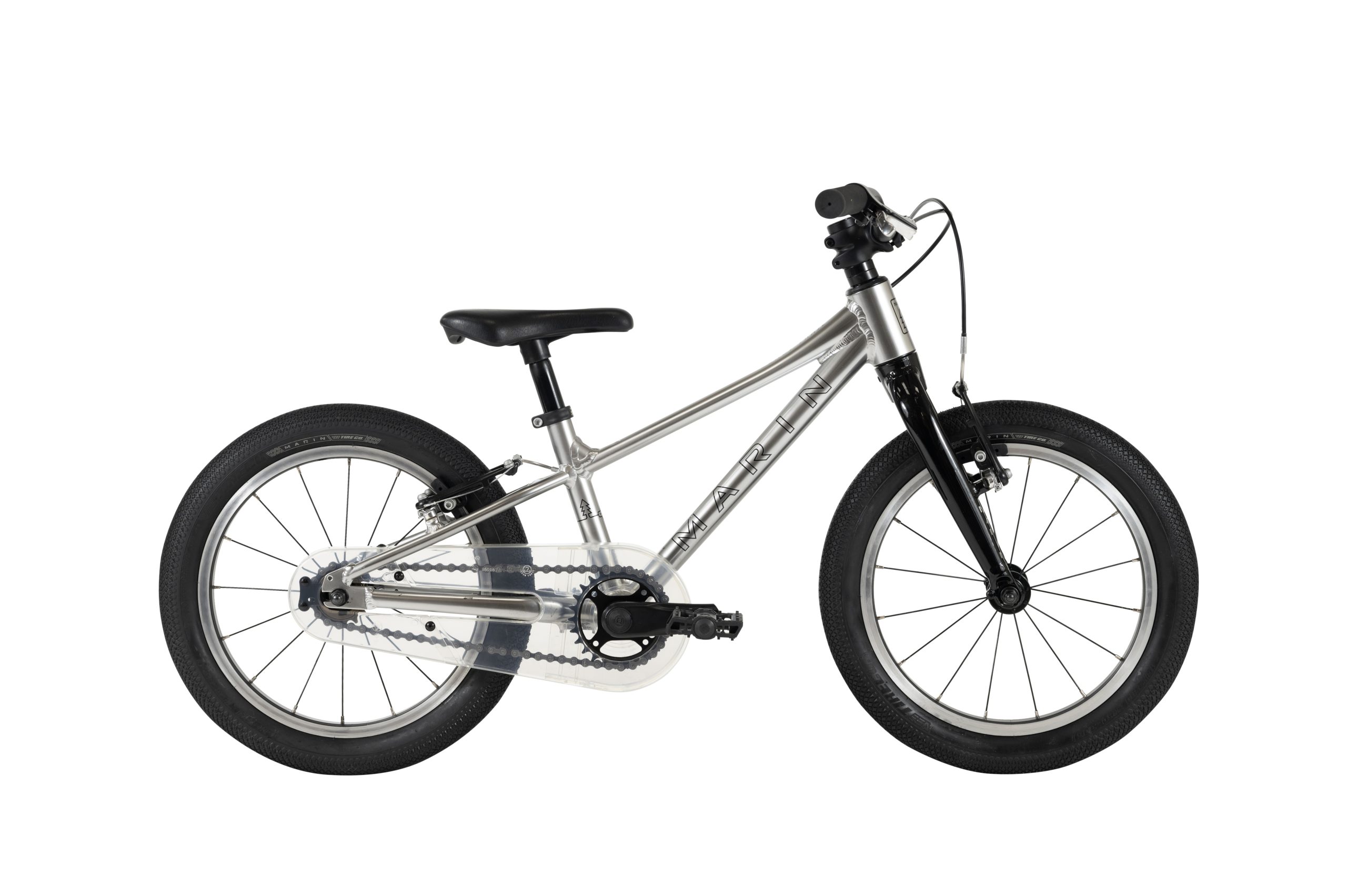 The Coast Trail 16″ is ready to tear up the local sidewalks, driveways and bike paths. Built around a lightweight aluminum frame and fork, and equipped with smooth rolling mixed tread tires and powerful linear pull brakes, these models are great for the new rider. Hand-operated brakes and freewheels help make the transition to Marin’s next bikes even easier.